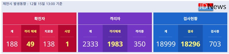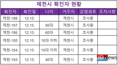 JD News 이용희 기자 = 충북 제천지역에 코로나 바이러스감염증(코로나19) 확진자가 1명 추가 되어 이날 확진자는 6명이다.
