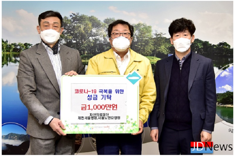 JD News 이용희 기자 = 자산의료재단 제천서울병원, 서울노인요양원이 제천시의 코로나19 취약계층을 위해 성금 1천만 원을 쾌척했다.