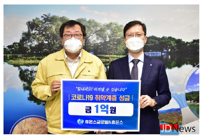 JD News 이용희 기자 = 헬스케어 전문회사로 제천 제1산업단지 입주기업인 ㈜휴온스그룹에서는 코로나19 취약계층 성금으로 1억 원을 24일 제천시에 기탁했다.