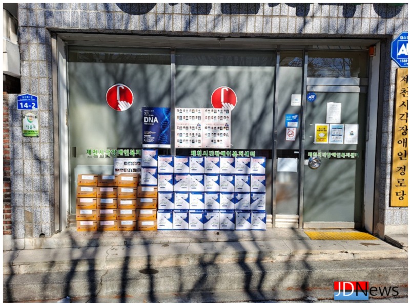 JD News 이용희 기자 = 충북시각장애인복지연합회 제천시지회(지회장 장현순)는 지난 15일 에 코로나 확산으로 인해 일상에 많은 제약이 따르는 시각장애인 회원들을 위해 KF94마스크 및 후원물품을 전달했다.