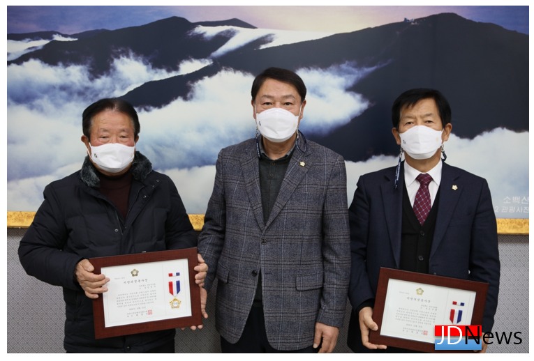 JD News 이용희 기자 = 단양군의회 김영주·조성룡 의원은 지난 1월 4일 충북시군의회의장협의회가 주관해 선정한‘지방의정봉사상’을 수상했다.