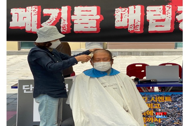 JD News 유소진 기자 = 민주당 장인수 전 정책위 부의장이 쌍용C&E(구 쌍용양회)의 폐기물매립장 건립 중단을 요구하며 무기한 단식농성과 삭발식을 거행했다.
