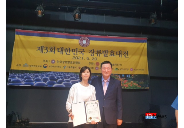 강은순 대표는 “약초의 고장 제천의 대표약재인 황기를 이용한 우렁쌈장과 된장을 만들어 이번 대회에 출품해 큰 상을 받게 돼 기쁘다”며 “앞으로도 미식도시제천을 홍보하고 알리는데 앞장서겠다”고 수상소감을 말했다.