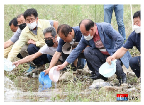 JD News 유소진 기자 = 단양군이 전국 기초 지자체에서는 최초로 자체 생산한 쏘가리 치어를 단양강에 방류하며, 내륙어촌 재생사업에서 첫 결실을 이뤘다.