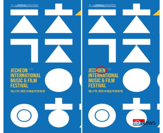 JD News 유소진 기자 = 제17회 제천국제음악영화제가 공식 포스터를 지난 8일 공개했으나 'Jecheon(제천)' 스펠링(spelling) 오타여부 확인도 안한 채 보도자료 배포로 기사화돼 해당 포스터가 매스커뮤니케이션(매스컴)을 돌아다니고 있는가 하며 예정된 기자회견을 하루 전에 취소하는 등 갈피를 잡지 못하고 있다.
