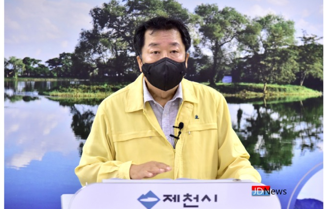 JD News 유소진 기자 = 20일 소백산국립공원 집단감염 관련 금일 신종코로나바이러스 감염증(코로나19) 추가 확진자 1명이 발생함에 따라 이상천 제천시장은 브리핑 발표를 통해 인근지역방문을 최소화해달라고 거듭 강조했다.