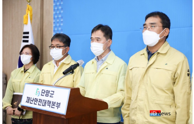 JD News 유소진 기자 = 20일 단양군 소백산국립공원 북부사무소 관련 신종 코로나바이러스 감염증(코로나19)확진 추가 4명이 발생돼 군민들이 불안에 떨고 있는 가운데 박대순 단양부군수가 긴급 브리핑 발표를 진행했다.