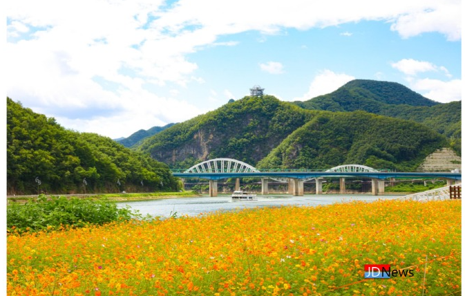 JD News 유소진 기자 = 단양군은 단양강 수변 인공사면에 조성한 대규모 야생화 식생대에 다채로운 꽃들이 꽃망울을 틔워내 절경을 이루고 있다.
